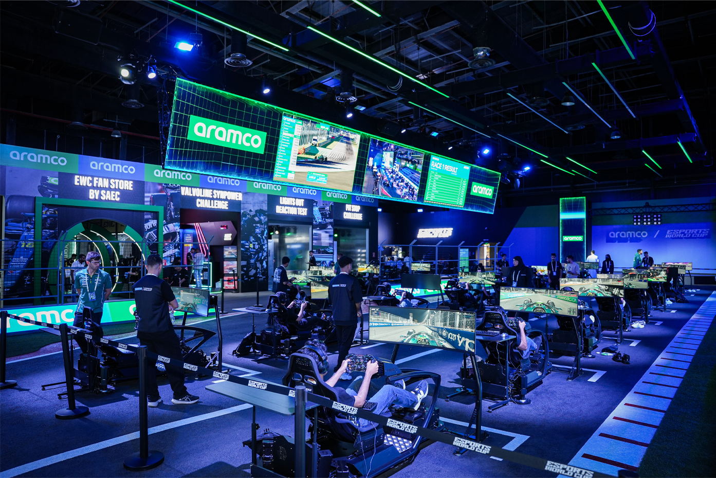 Our work includes large scale industry events like Next World Forum, global brand activations for Aramco at the Esports World Cup, high footfall mall activations, online tournaments, and ambitious builds featuring custom environments, projections, and experiential installations designed to stop audiences in their tracks.